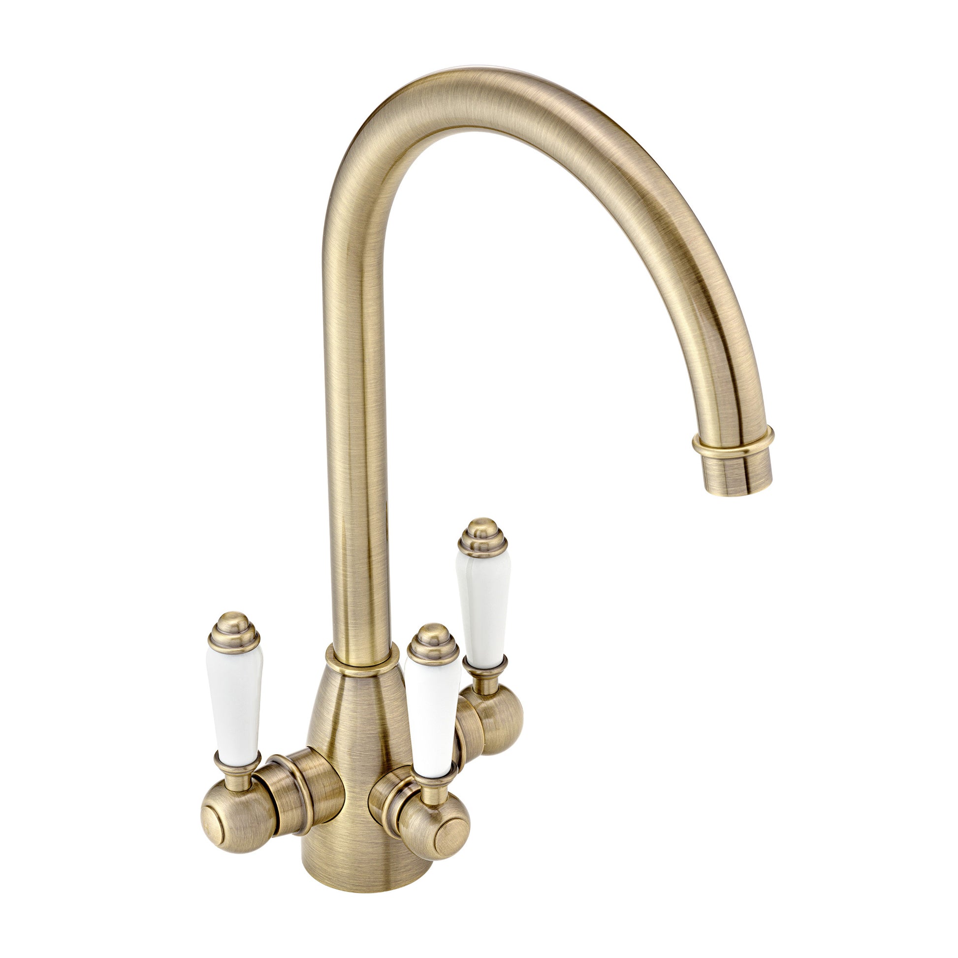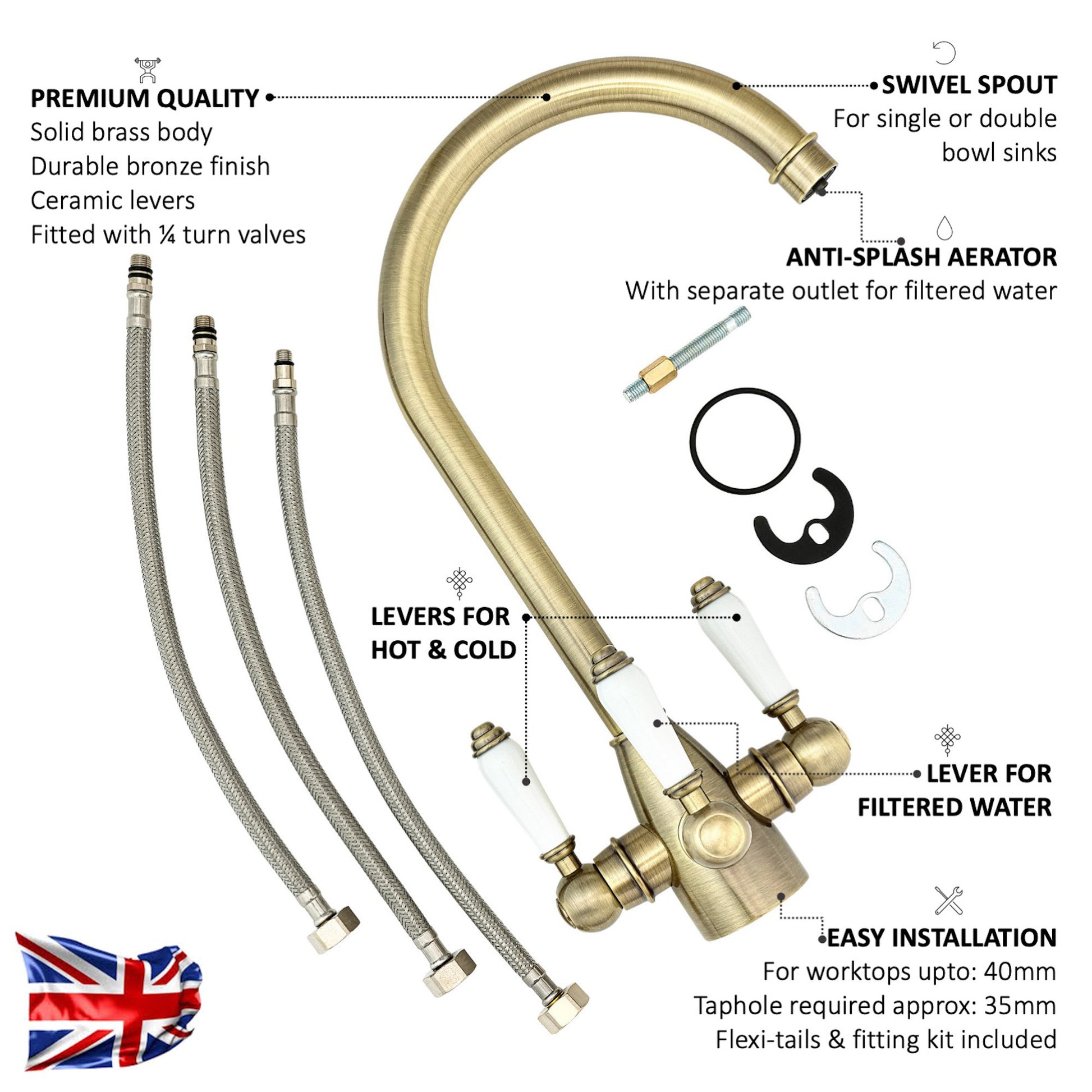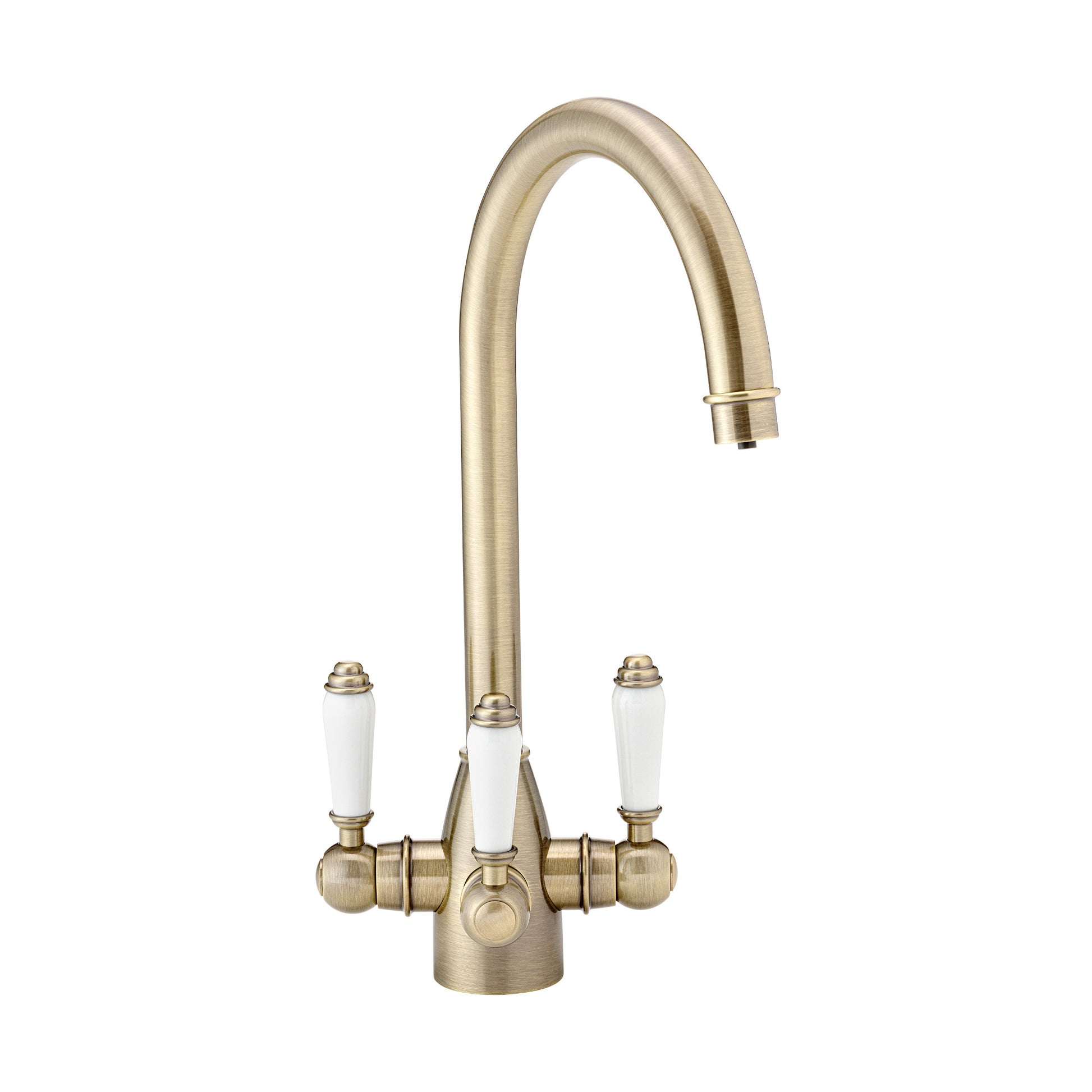 Stunning antique brass finished traditional Cotswold design three-way filter mixer tap