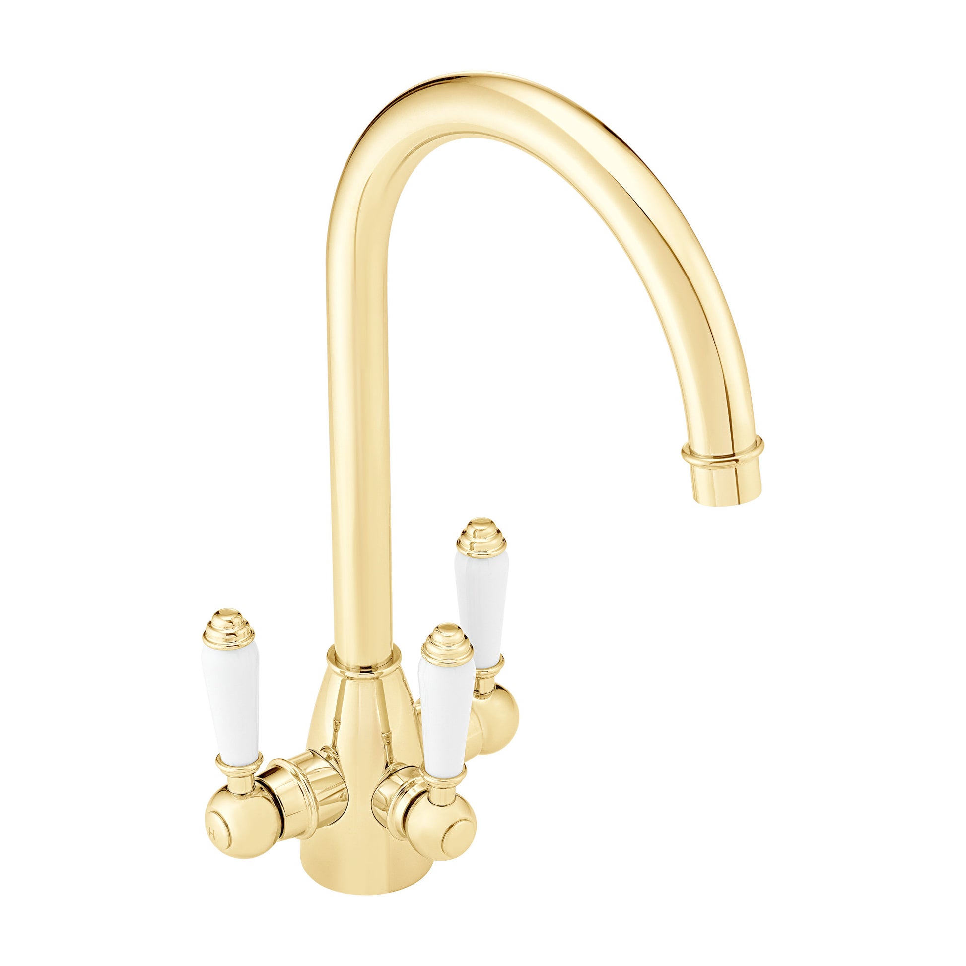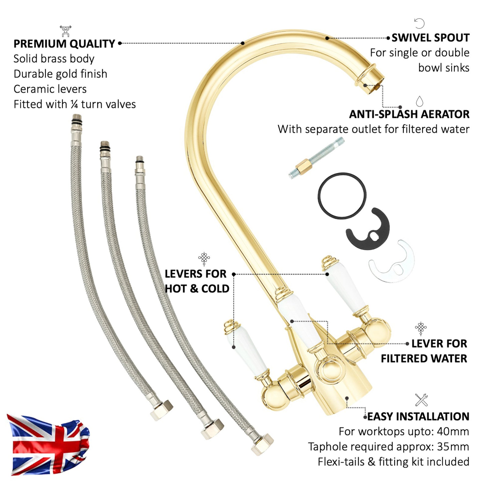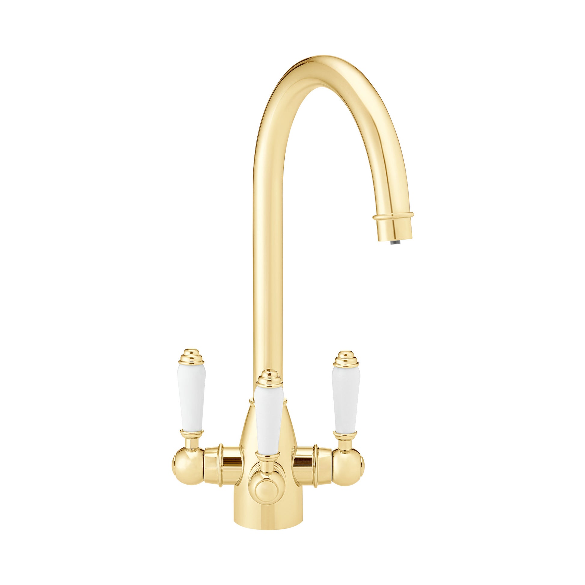 Stunning gold finished traditional Cotswold design three-way filter mixer tap