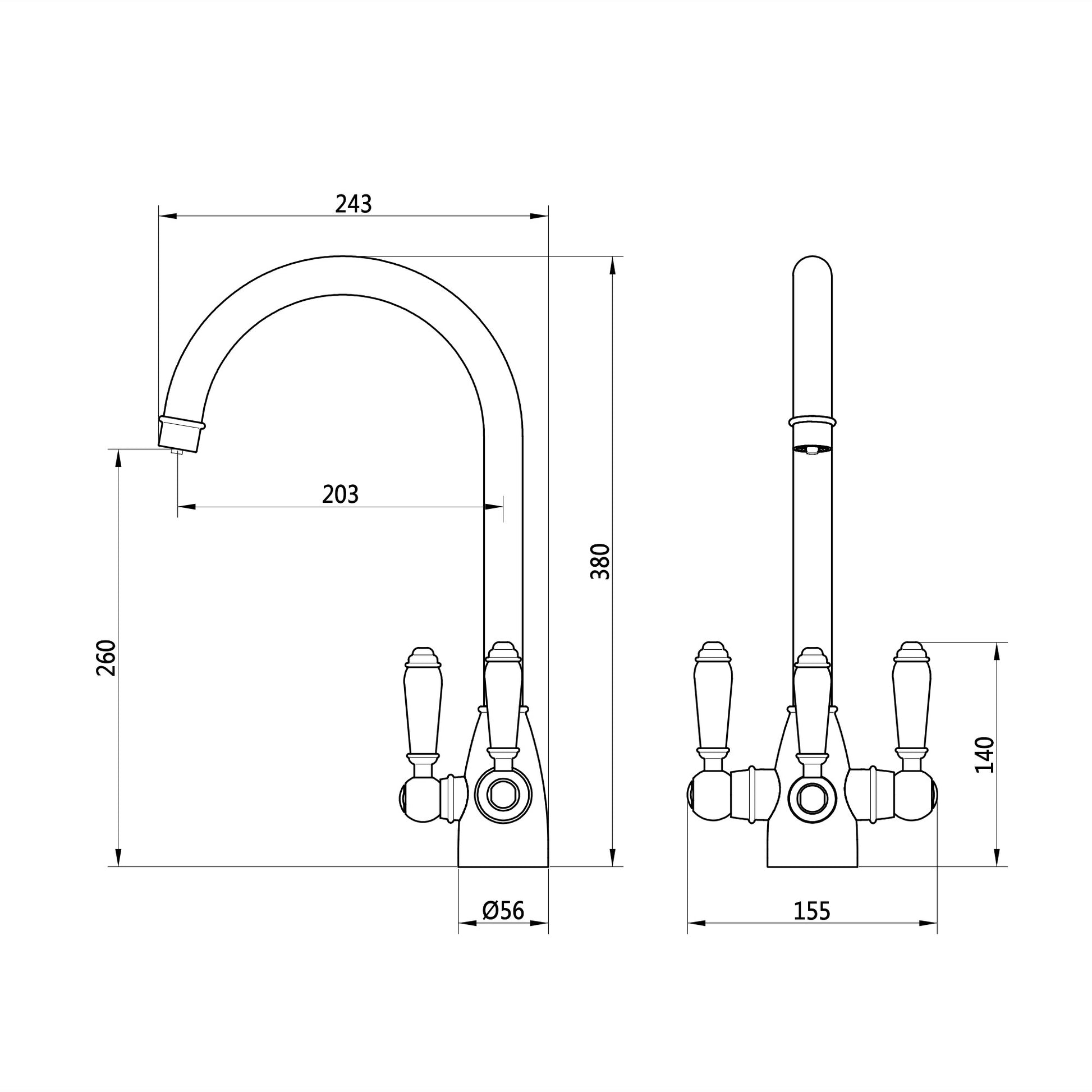 Max 40mm worktop, 35mm sinkhole, 203mm spout projection, height 380mm