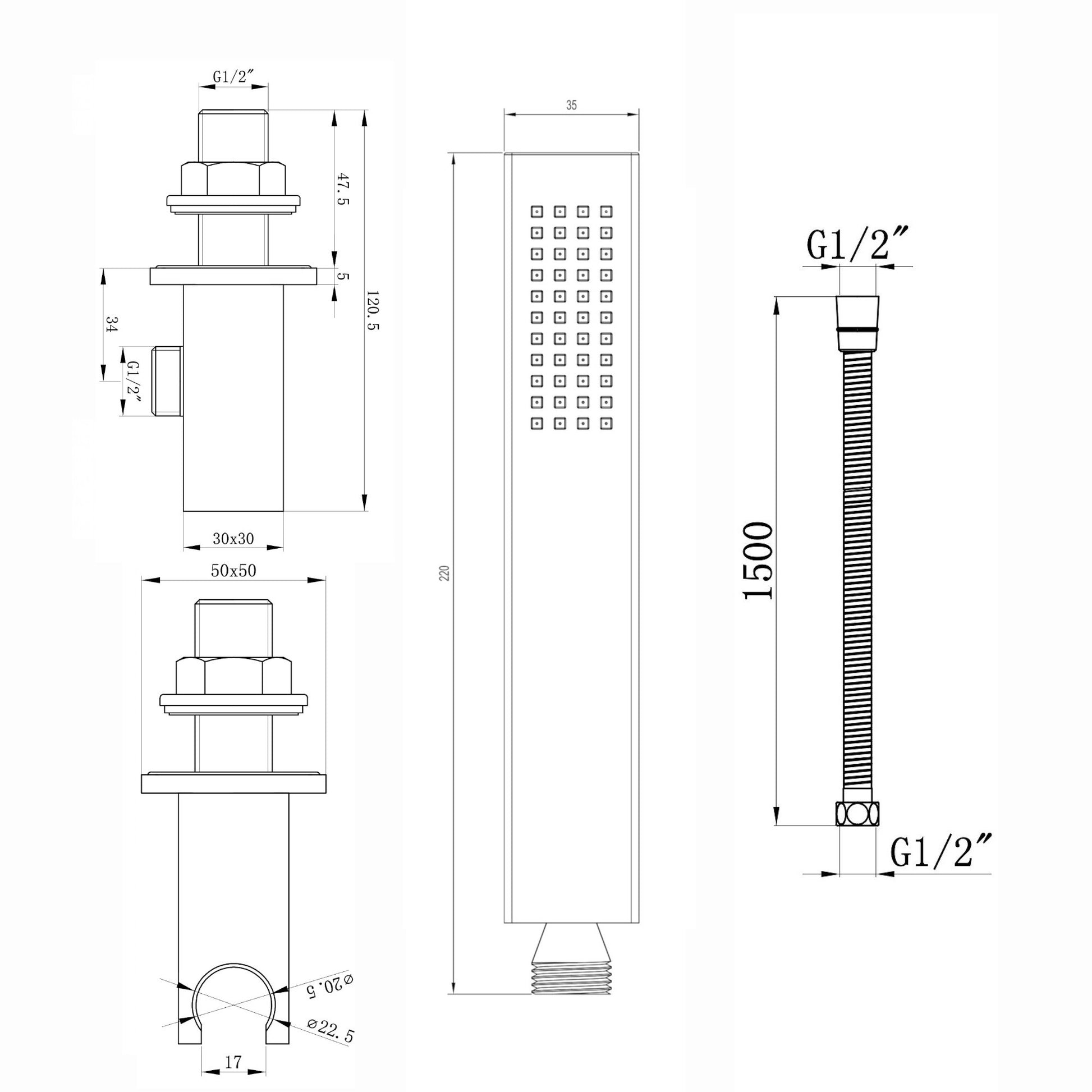 - Package includes: handset x 1, shower hose x 1; wall bracket with outlet x 1