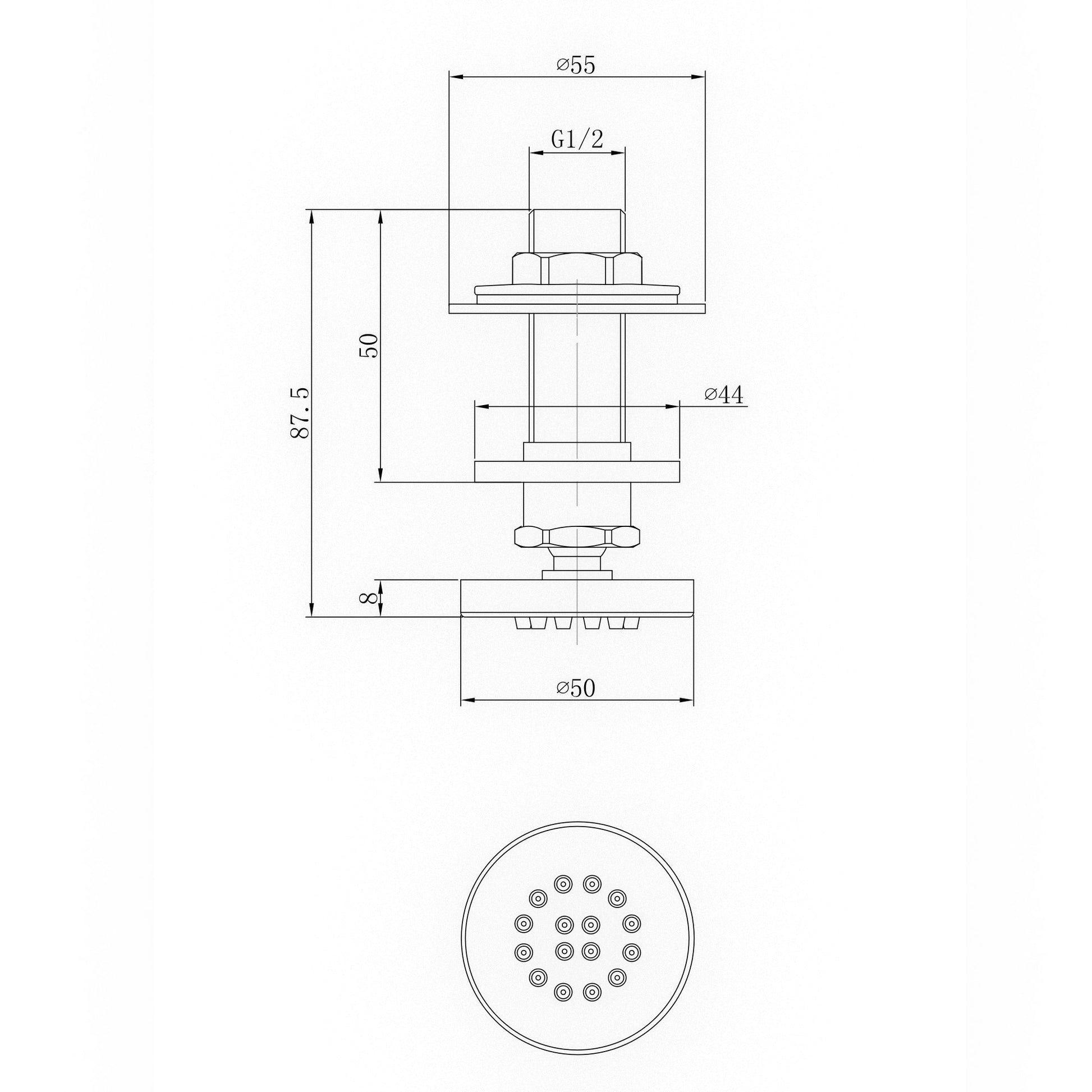 - Anti-limescale easy-clean rubber jets, 1/2" connection