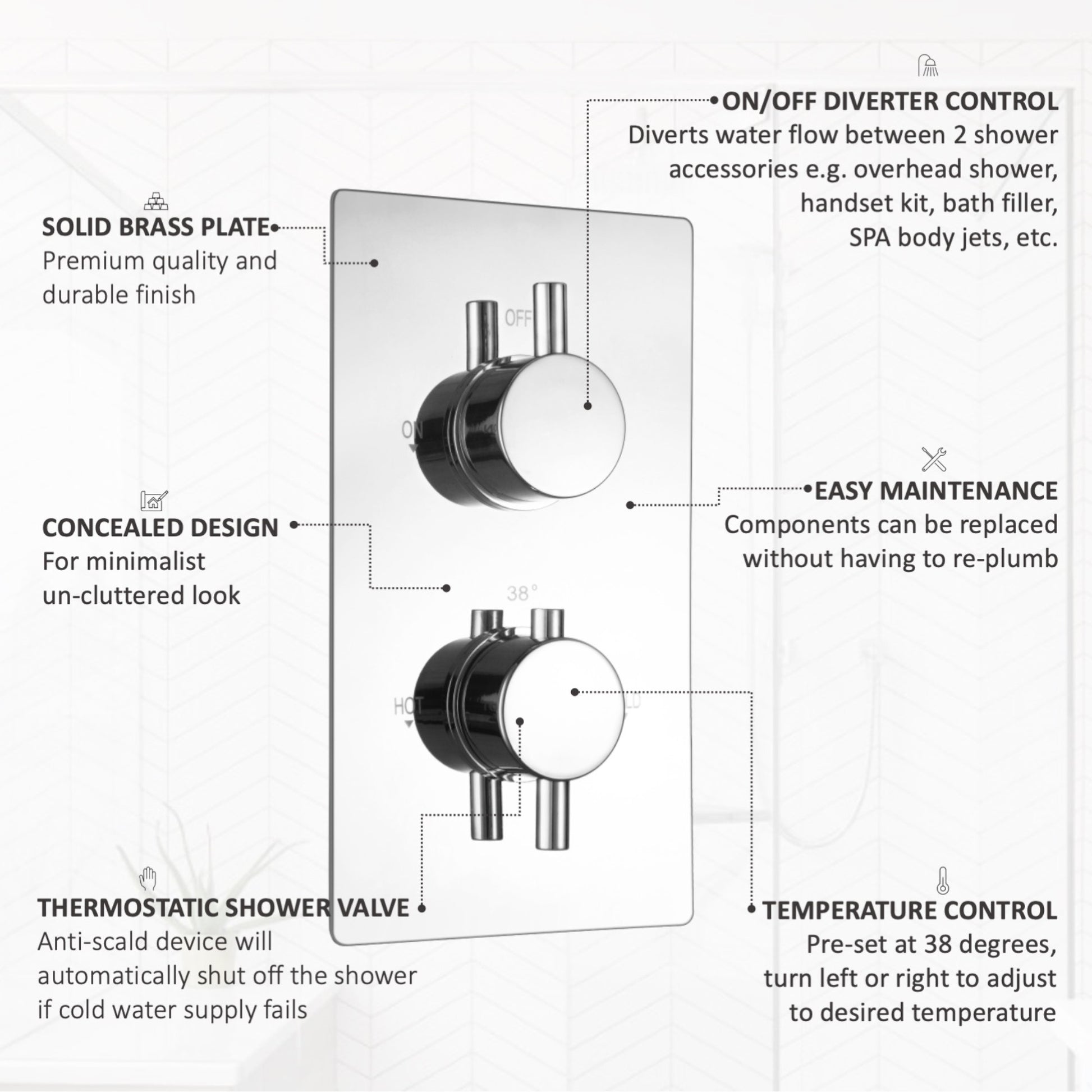 - Anti-scald thermostatic control