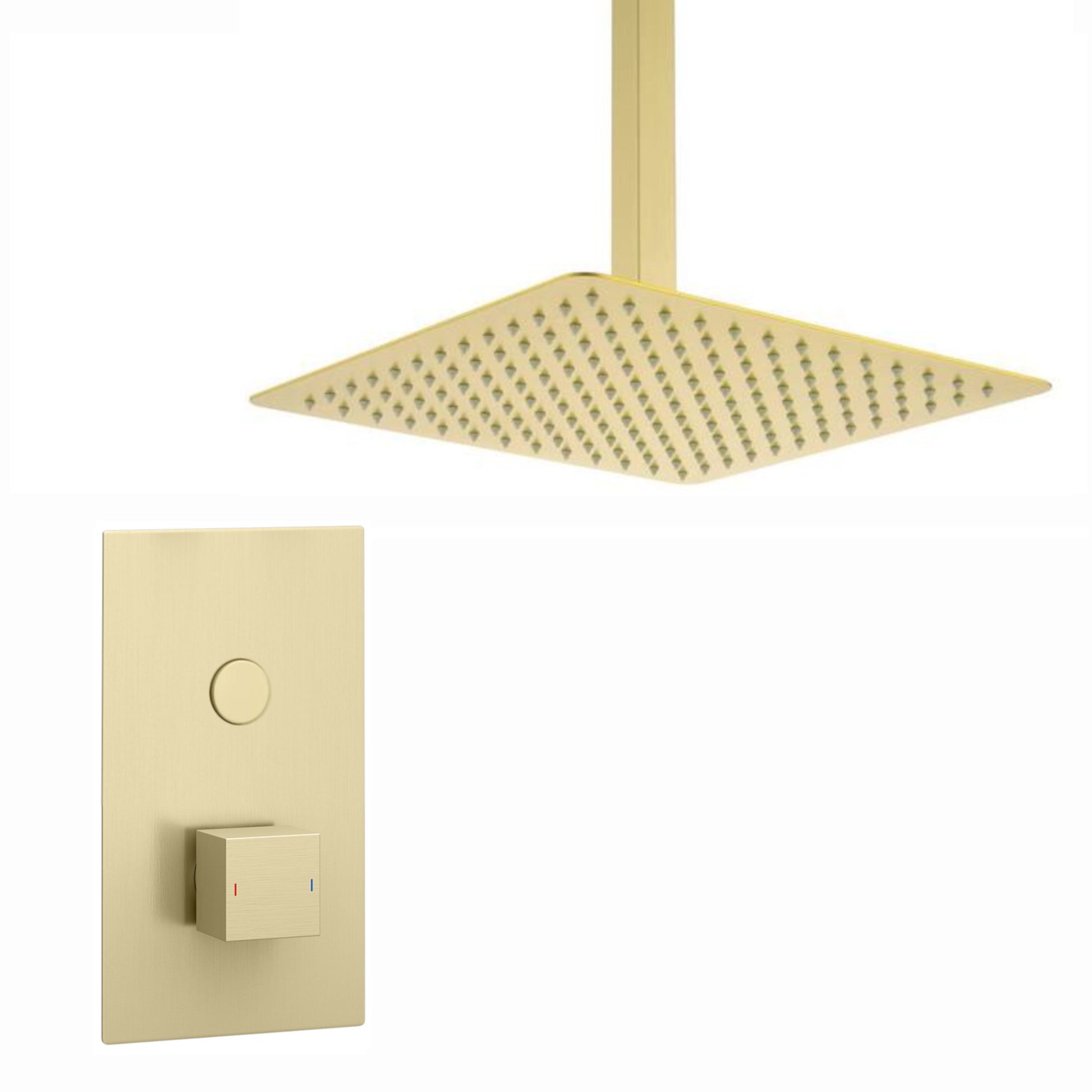 Spello Square Thermostatic Concealed Shower Set with Ceiling Mounted Shower - Brushed Brass